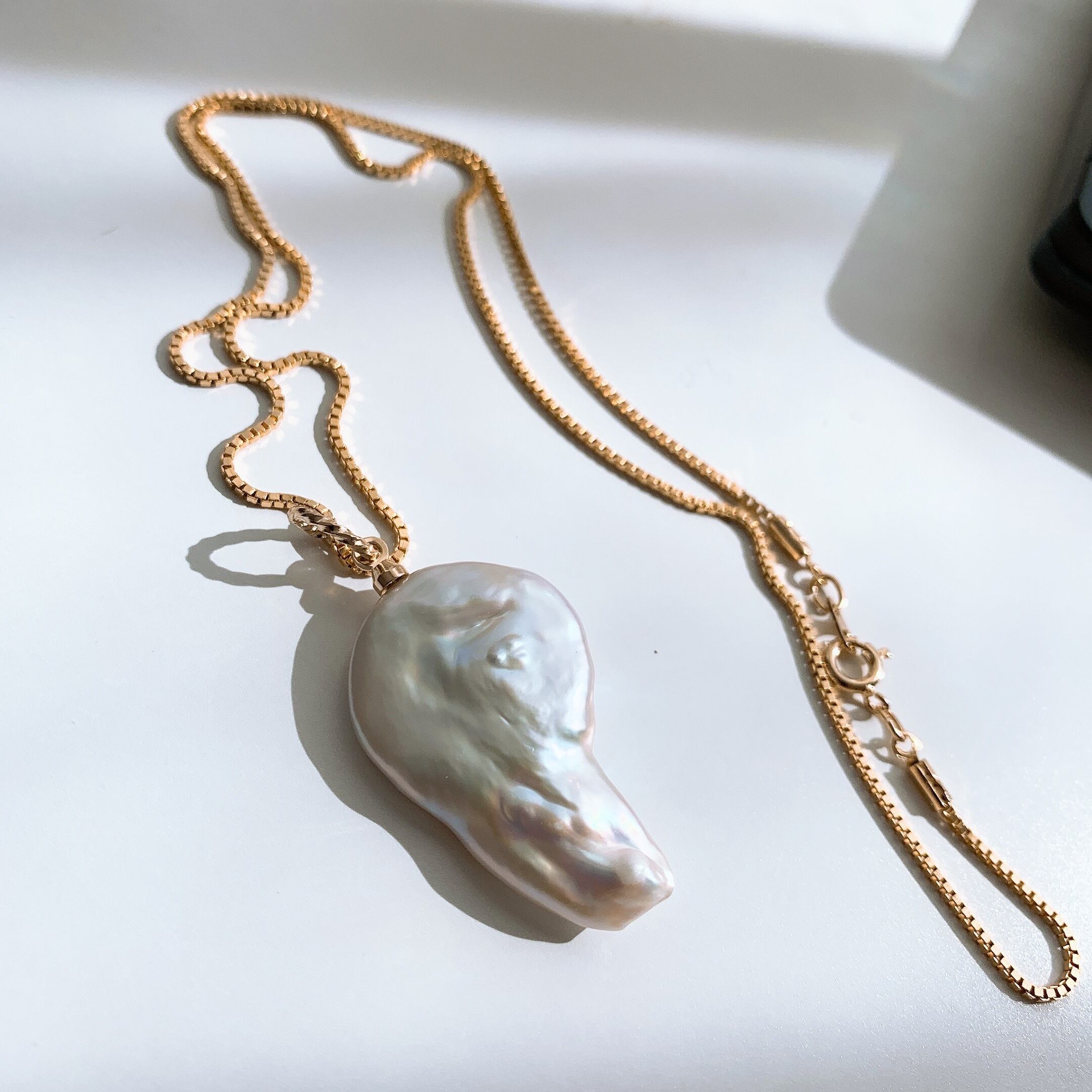 サイズ:チェーンの長さ約40cm(60cmまで無料で変更いたします)、パールの大きさ約3cmx2cm