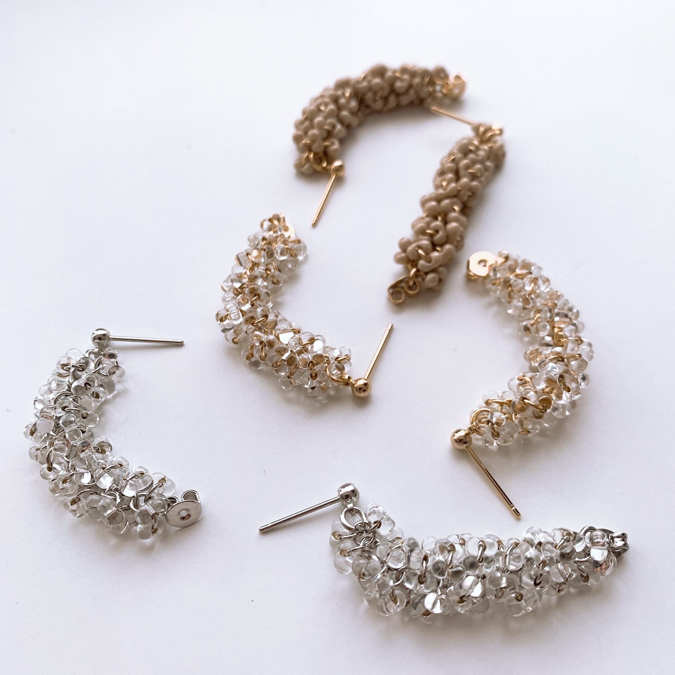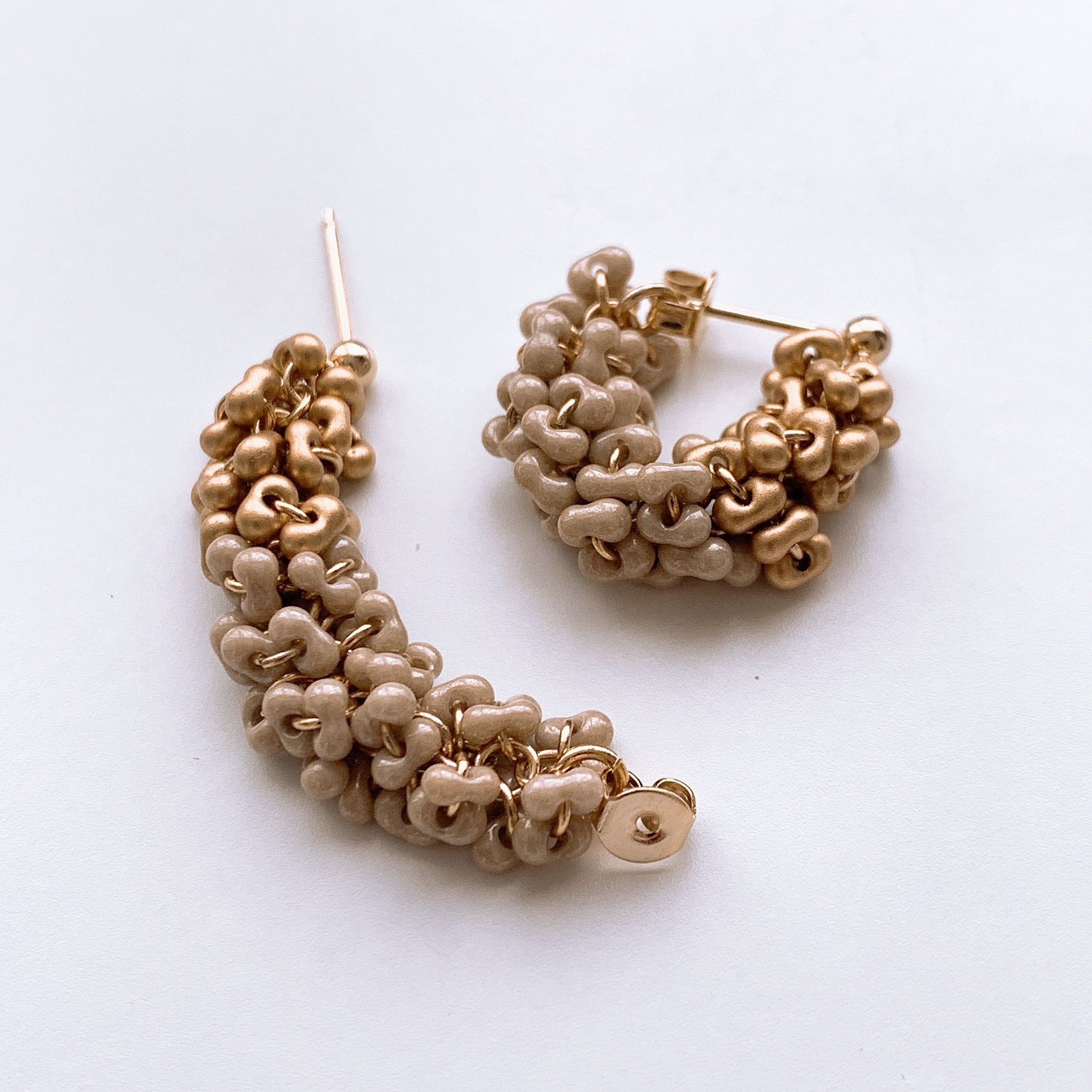 小さなチェコシードビーズを両耳で120個紬ぎました。