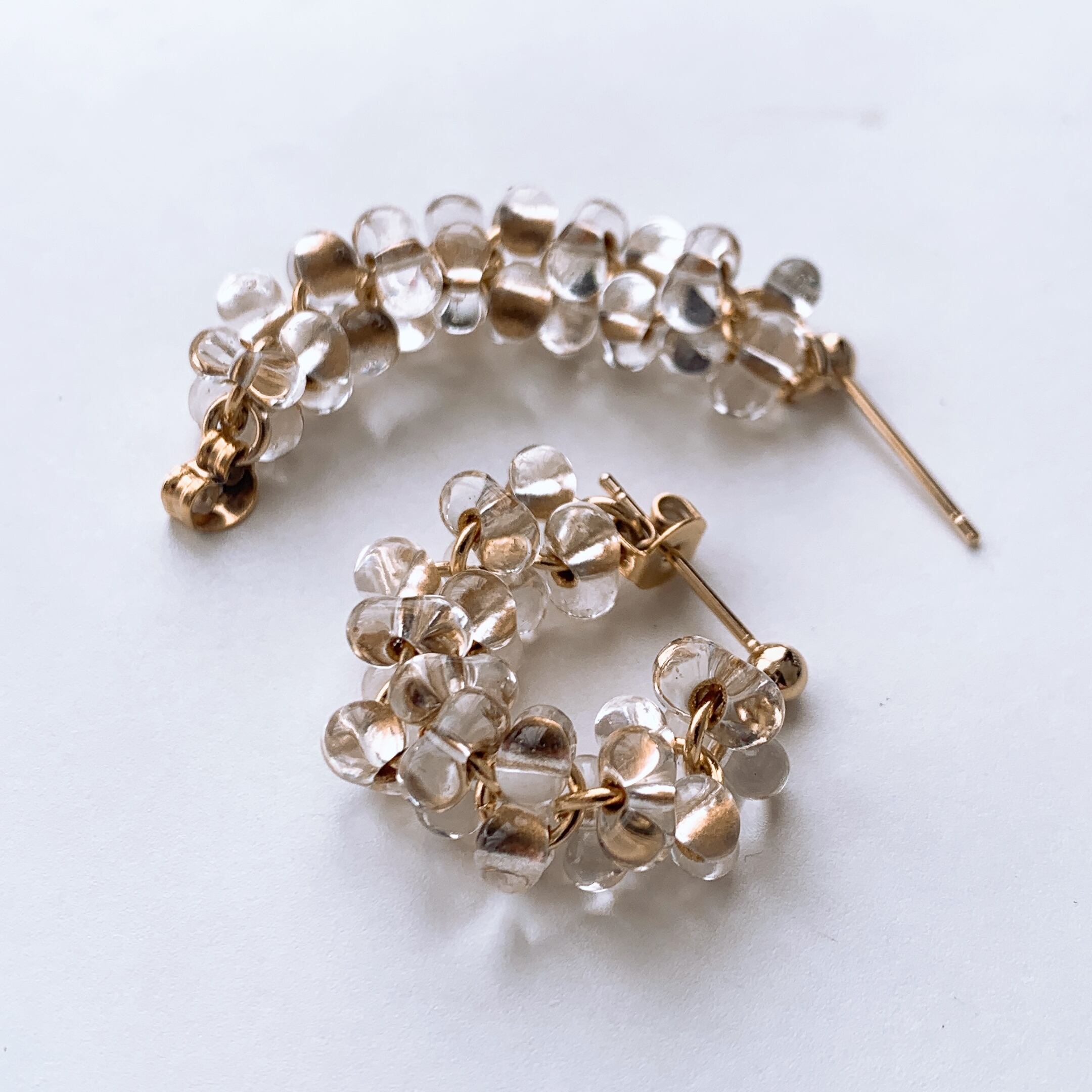 チェコシードビーズをキレイに繋げてじゃらじゃらとしたピアスです。