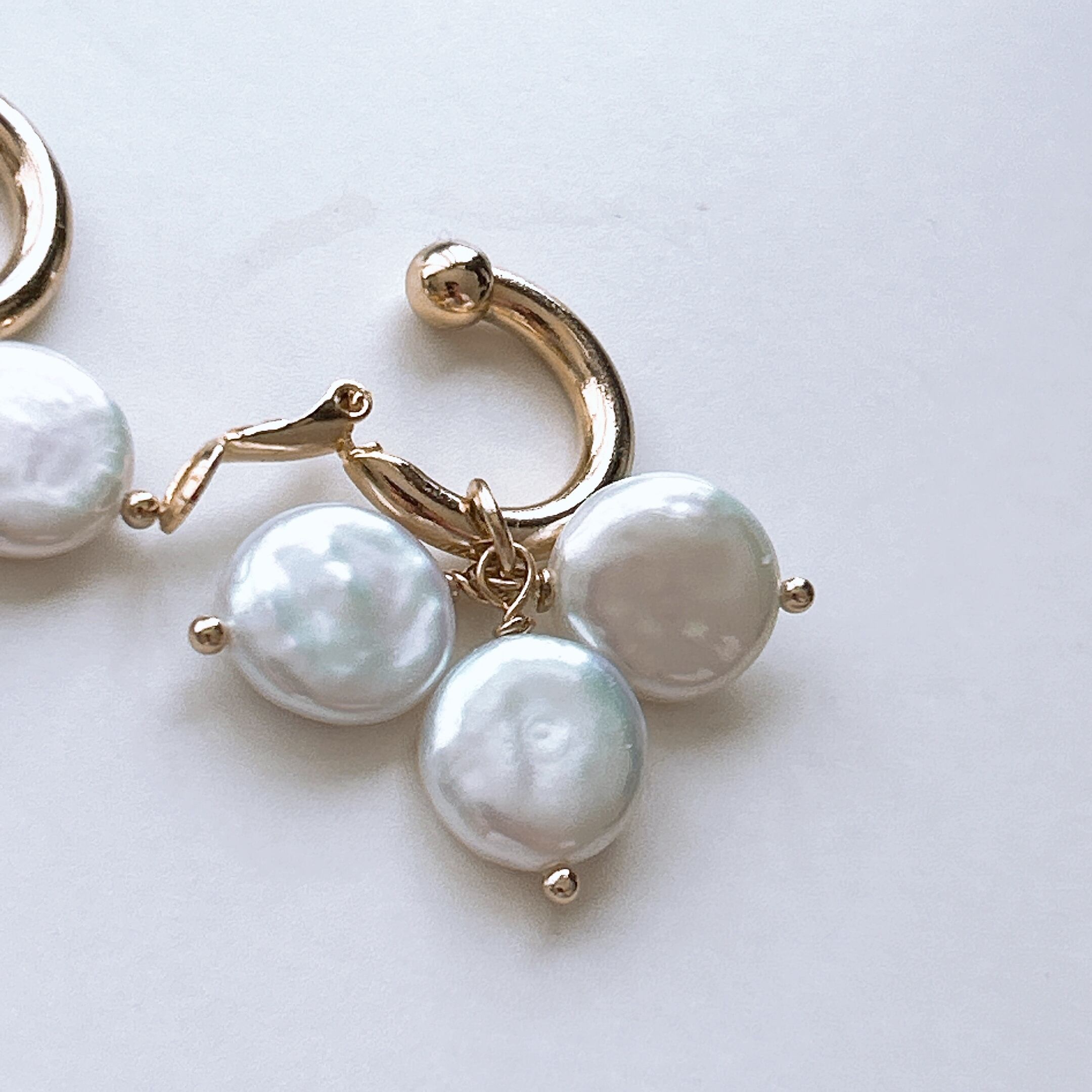 貴重なコインパールを3個ずつ繋いだイヤリングです。
